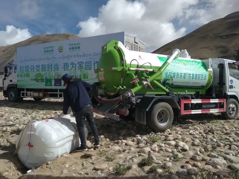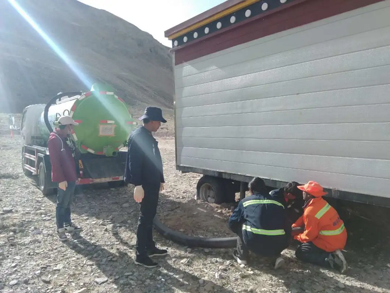 每隔一段時間,國策環(huán)保相關(guān)工作人員便會定期對這16個公廁的排泄物進行清理,能原地處理的便用吸污車進行現(xiàn)場處理,達到排放標準后排放到附近河里,不能現(xiàn)場進行處理的則會將其運送到定日縣垃圾填埋場進行填埋處理。