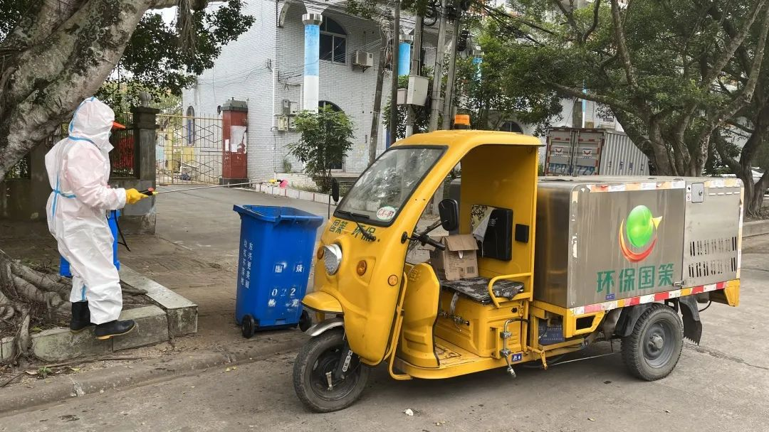 裝載完成后,車隊長曾慶彪開著裝滿消毒液的霧炮車對重點疫區(qū)江平鎮(zhèn)各主次干道、人流密集場所、重要點位進行高炮霧化消毒,以增強街道消毒效果,最大限度減少病毒滋生蔓延,切實為市民提供一個安全、清潔的城市環(huán)境。