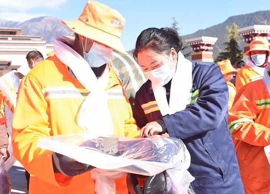 1月7日,為表達對國策一線環(huán)衛(wèi)工人的關(guān)懷和祝福,林芝市慈善總會在工布公園工布廣場開展了“寒冬送溫暖 致敬城市美容師”送冬衣活動?;顒蝇F(xiàn)場,市慈善總會工作人員為50名環(huán)衛(wèi)工人敬獻哈達,并送上慰問冬衣。