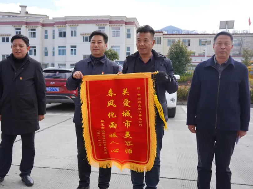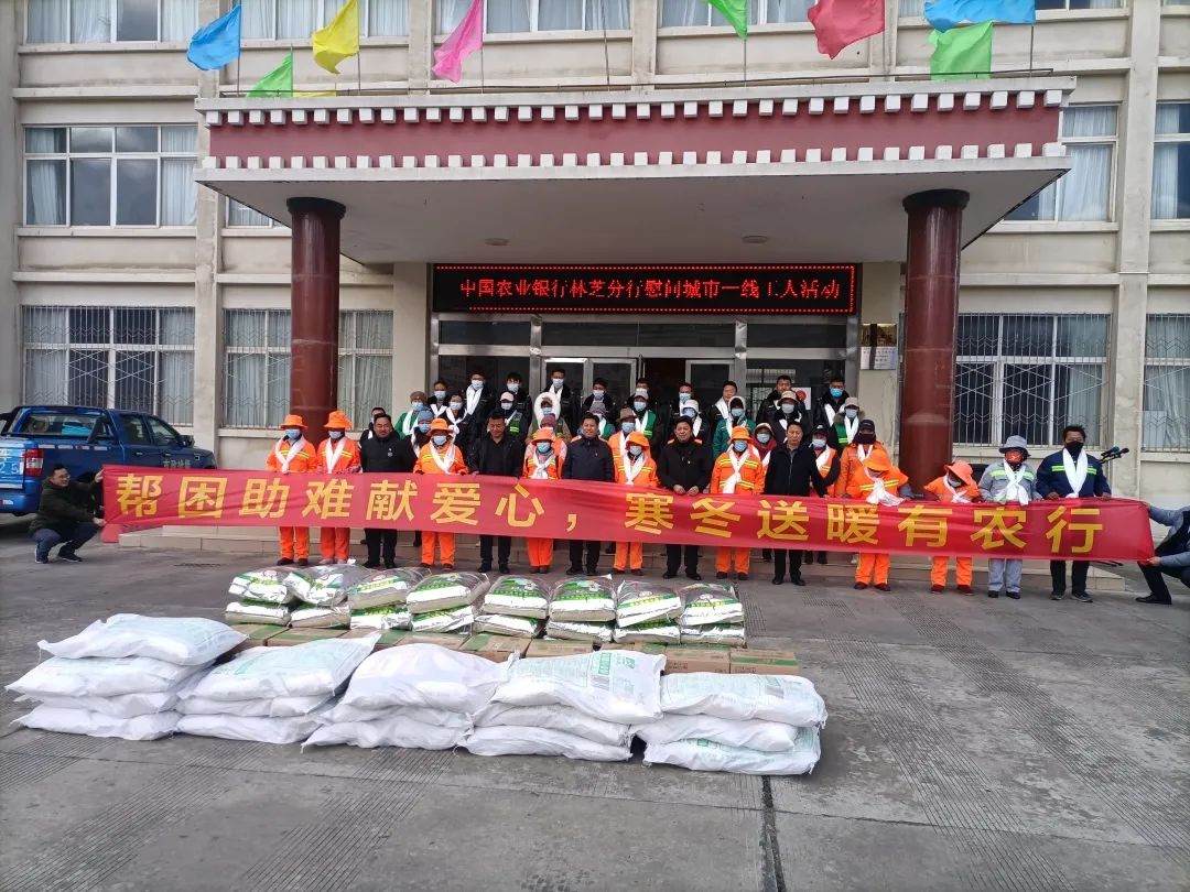 1月14日,中國農(nóng)業(yè)銀行林芝分行在林芝市城市管理和綜合執(zhí)法局開展一線工人慰問活動。中國農(nóng)業(yè)銀行林芝分行黨委書記、行長扎西達娃,黨委委員、副行長格桑次仁,中國農(nóng)業(yè)銀行林芝分行辦公室、機構(gòu)業(yè)務(wù)部相關(guān)負責(zé)人,林芝市城市管理和綜合執(zhí)法局黨組書記、副局長孟存軍,黨組成員、二級調(diào)研員周旭東,市城市管理和綜合執(zhí)法局辦公室、環(huán)衛(wèi)管理中心相關(guān)負責(zé)同志參加慰問活動。